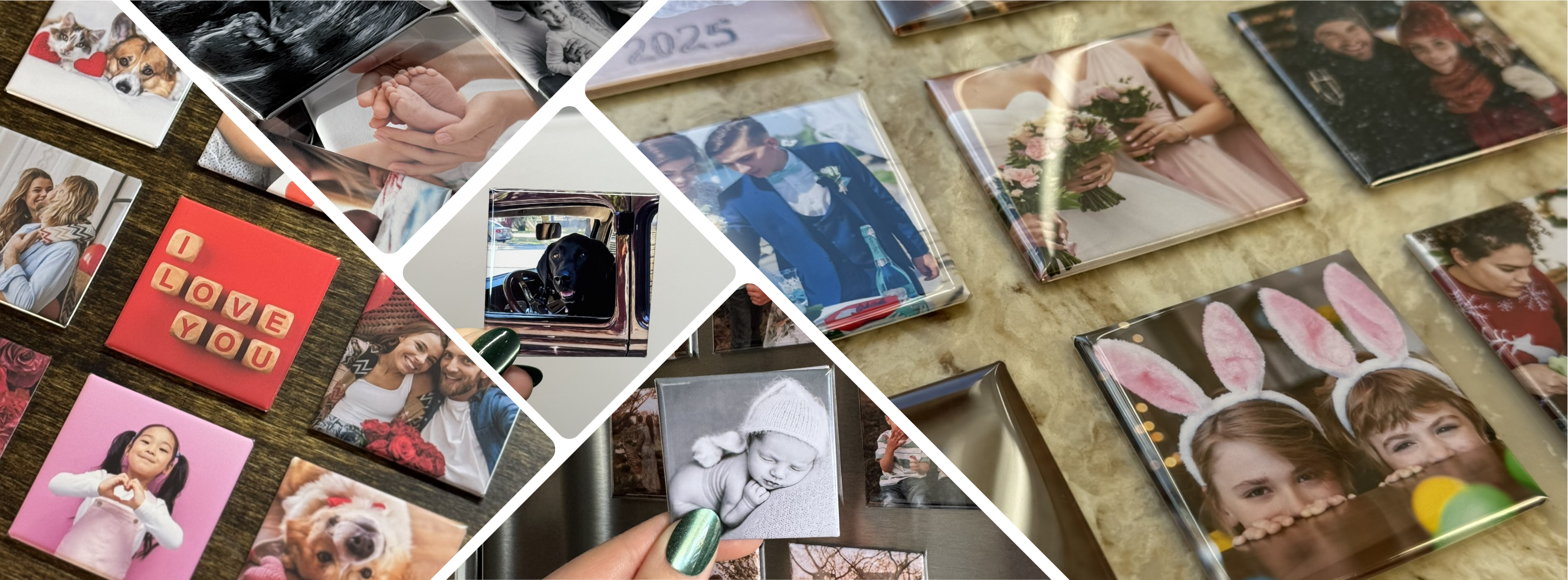 We took a bunch of silly photos in a photo booth at a friend’s wedding and turned them into magnets. It’s such a fun keepsake—high-quality print and a glossy finish that really makes them pop!