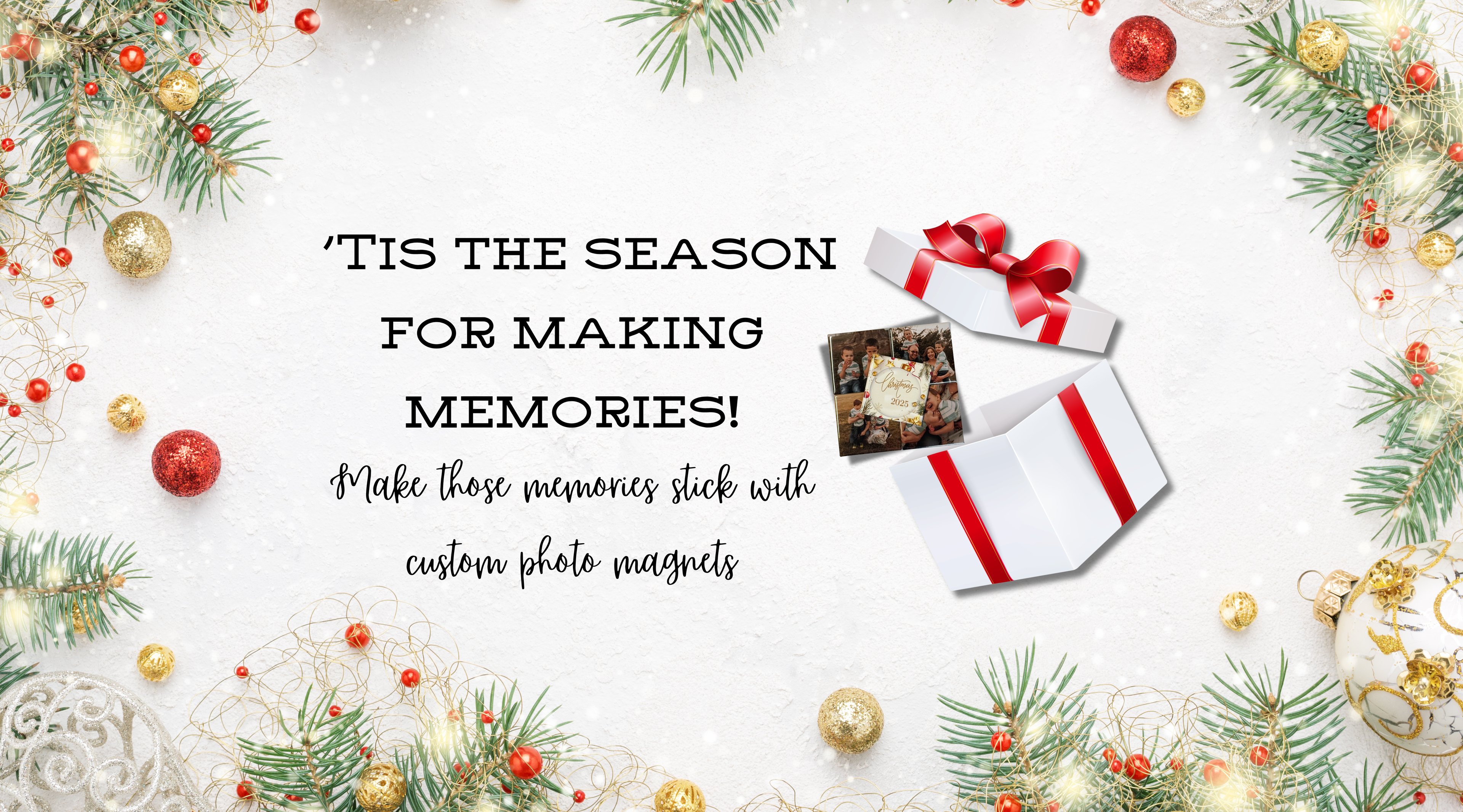 Custom Christmas Photo Magnet Set (Satin Gift Bag Included)