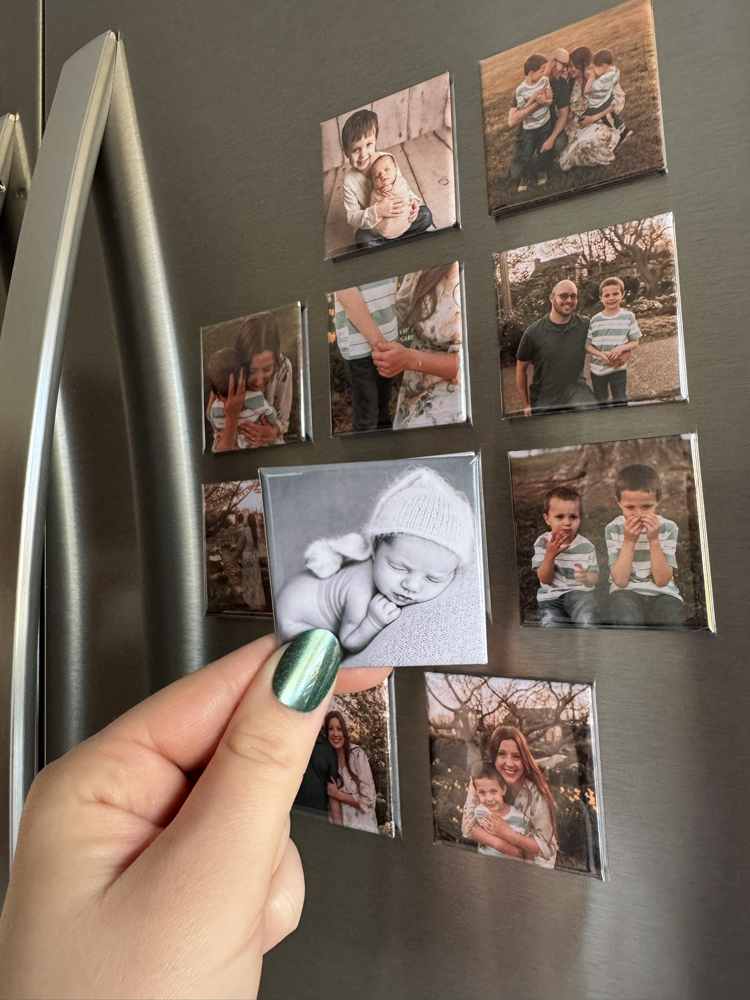 I made a set of magnets with monthly baby photos for my daughter’s first year. Now we have a little magnet timeline on the fridge—it’s adorable and such a special way to watch her grow.